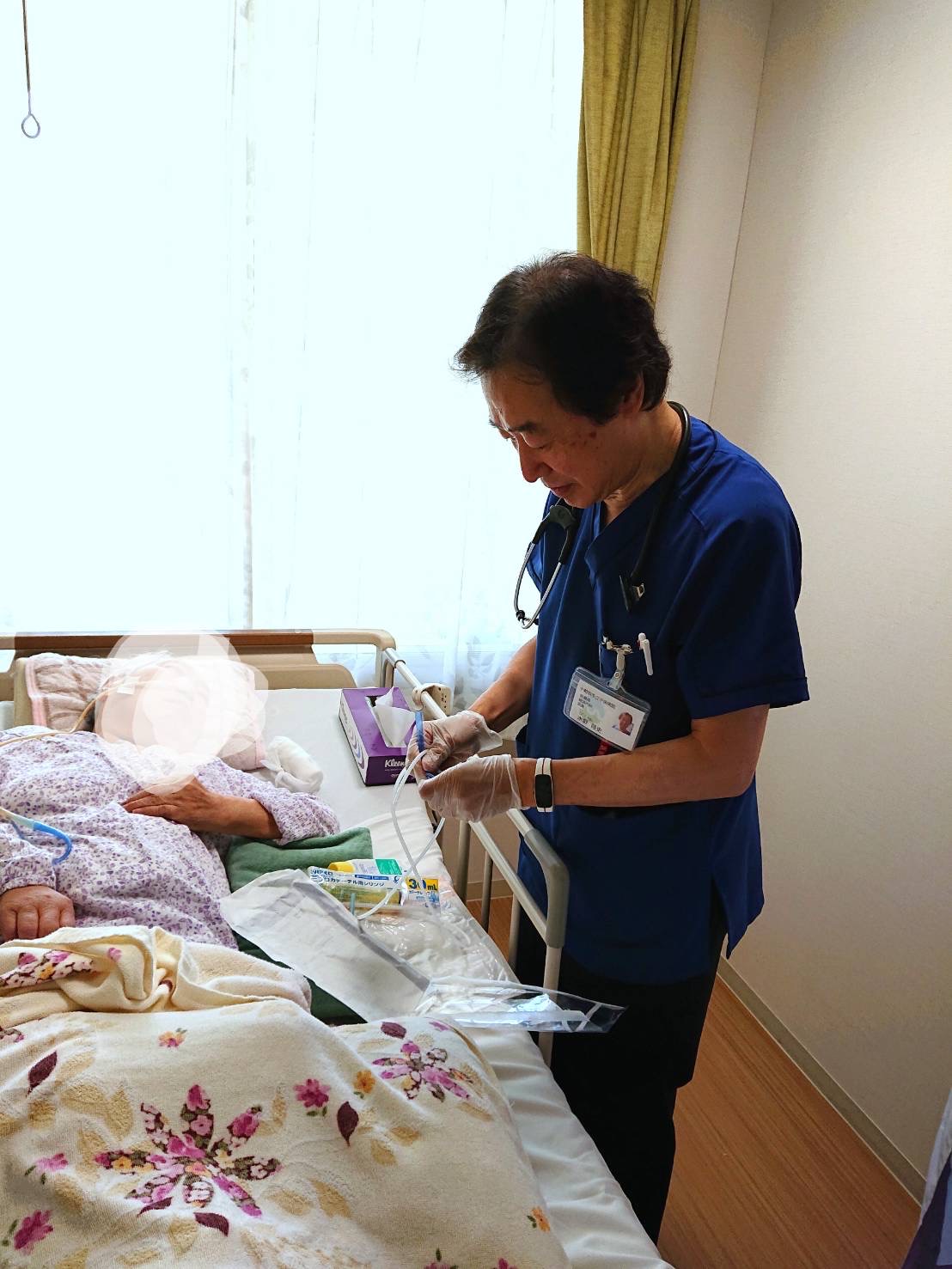 診療所は、患者さんが住み慣れた環境で生活を続けたいという思いや最後まで家族と一緒に生活したいという思いが実現できるよう、ケアマネージャー、ホームヘルパー、訪問看護師、薬剤師等と連携を取って、寝たきりなどにより自宅や施設からの通院が困難となった患者さんのところへ定期的に訪問し、診察、処方等を行っています。